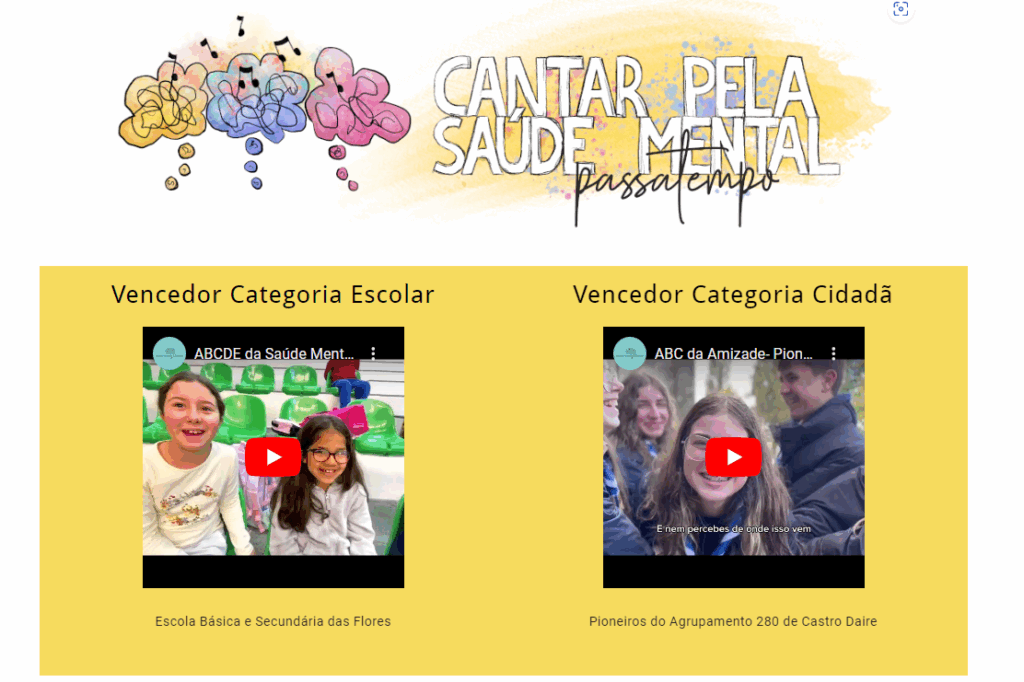 A EBSFlores ganha o passatempo “cantar pela saúde mental” na categoria escolar. Parabéns aos participantes e mentores